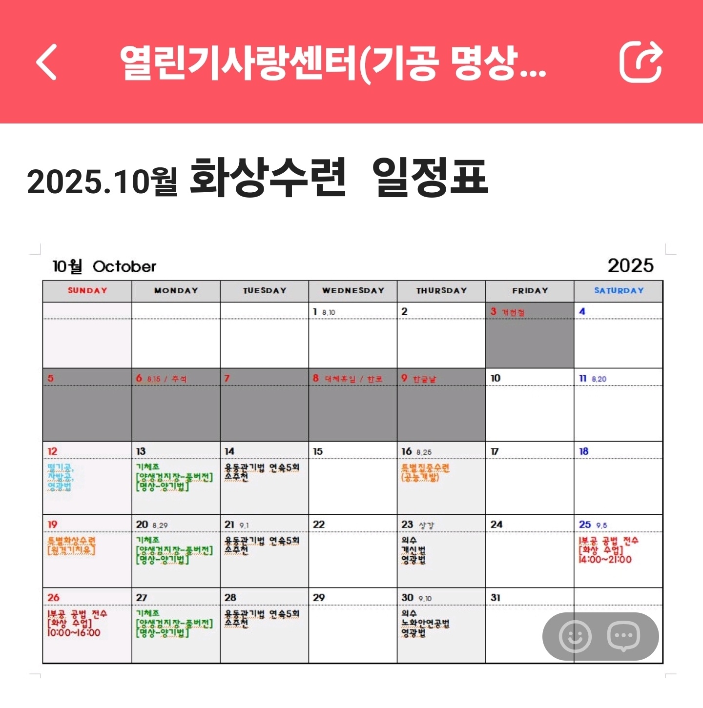 10¿ù È»ó¼ö·Ã ÀÏÁ¤Ç¥ ¾È³»ÇÕ´Ï´Ù